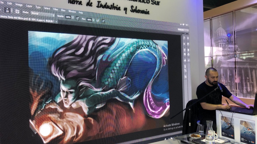 Fernando Granea, es un artista visual fueguino que vive en Buenos Aires. Su presentación se basó en la realización en vivo de una ilustración hecha con el programa photoshop mediante una tableta gráfica al mismo tiempo que se proyectaba en una pantalla HD del stand.