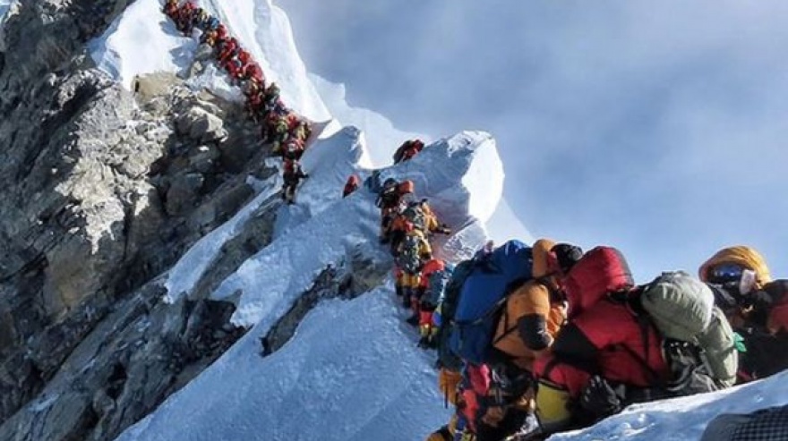El Monte Everest vivió una jornada histórica este miércoles al ser el escenario de la congestión más alta del mundo. La insólita cola de montañistas quedó registrada en una imagen en la que se aprecia una larga fila de personas esperando su turno para coronar la cima.