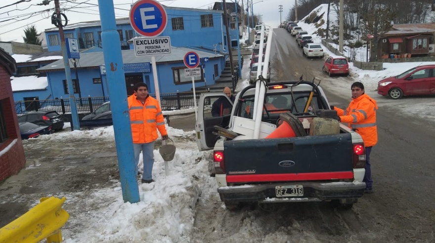 La Municipalidad de Ushuaia lleva adelante el trabajo de colocación de cartelería en frentes de domicilios de personas que tienen discapacidad, instalación de nomencladores de calles y alturas, indicación de paradas de taxis y de ordenamiento de tránsito en la ciudad, a través de la División de Señalamiento, a cargo de Carlos Cruceño que depende, desde comienzos del presente año, de la Secretaría de Gobierno.
