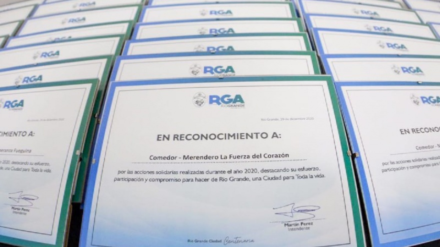 Junto a la secretaria de Desarrollo Social, Silvana Angelinetta, de la Mujer, Género y Diversidad, Alejandra Arce, y el secretario de Gestión Ciudadana, Gonzalo Ferro, el intendente Martín Perez encabezó la entrega de reconocimientos a 53 representantes de comedores y merenderos comunitarios de Río Grande por el trabajo llevado a cabo durante todo el 2020.