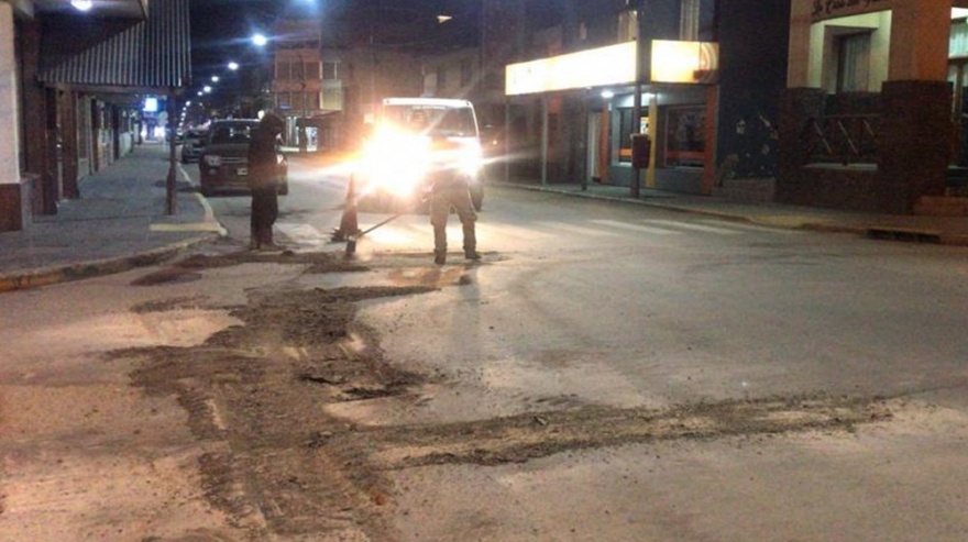 La Municipalidad de Ushuaia realizó trabajos nocturnos de bacheo en toda la extensión de la calle San Martín