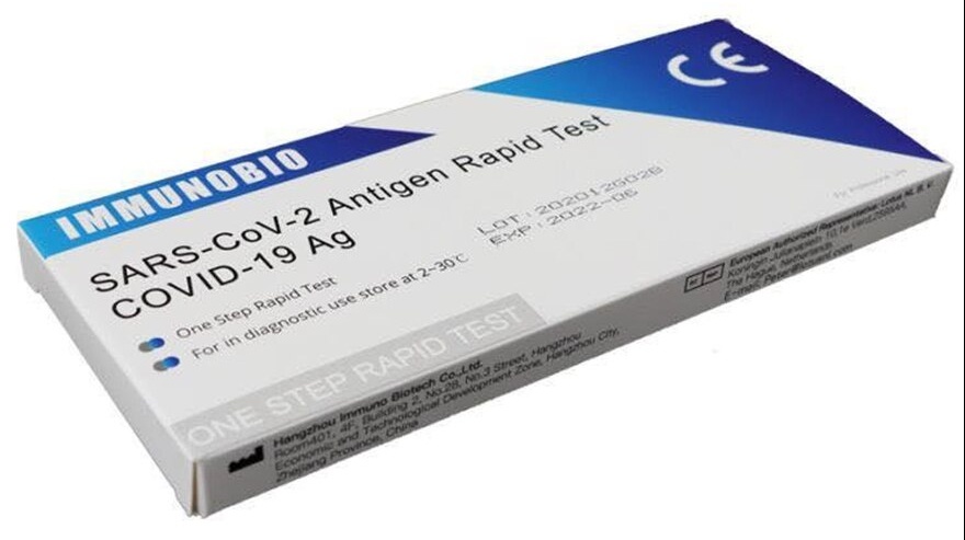 Dentro del envase del test Immunobio, del laboratorio Hangzhou Immuno Biotech CO Ltd, los interesados encuentran una bolsa de aluminio con cassette de prueba y desecante, tampón de ensayo, hisopo estéril y tubo de recolección de muestras, además de las respectivas instrucciones de uso.