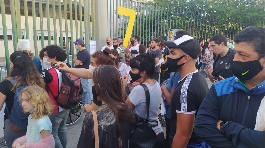 10.26 Ante la falta de organización, los argentinos que esperan por una credencial comienzan a discutir, hay polémicas por los números y por los “colados”.