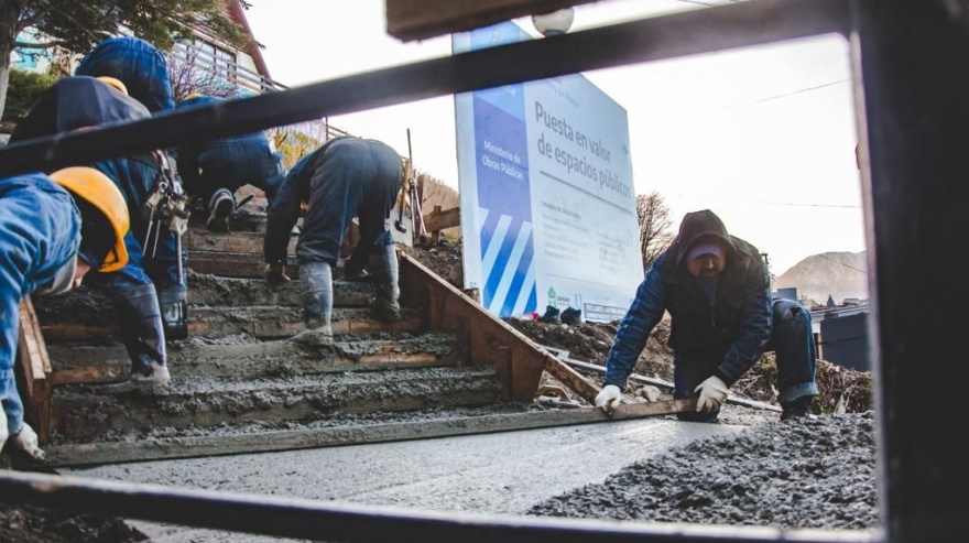 Hormigonaron el último tramo de la escalera de calle Belgrano