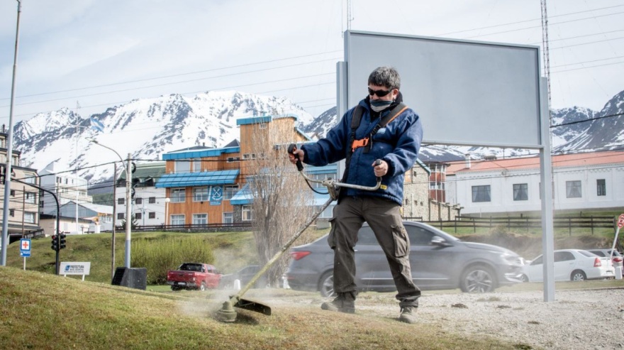 Con cortes de pasto, colocación de plantines y mejoras de los canteros instalados en las plazoletas ubicadas entre las avenidas Maipú y Prefectura Naval, trabajadores del área realizan sus tareas desde Yaganes y hacia el sector portuario.