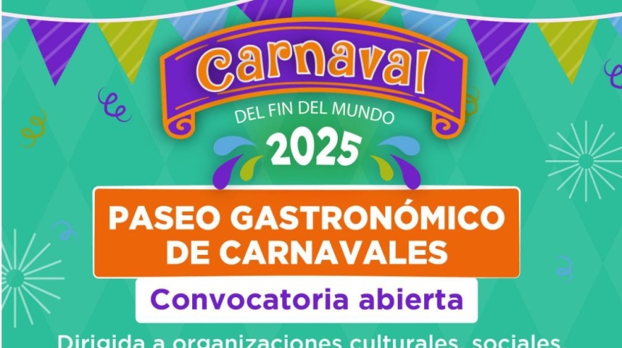 La Municipalidad de Ushuaia, en el marco del “Carnaval del Fin del Mundo 2025”, informa a vecinos y vecinas que se encuentra abiertas las inscripciones para ser parte del Paseo Gastronómico.