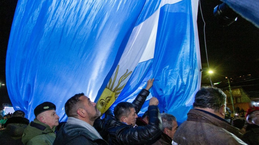 A la medianoche se llevó adelante la ceremonia de recambio de la Bandera nacional, en la que participó el secretario de Asuntos Malvinas del Municipio, veterano de guerra Dante Asili, junto a otros ex combatientes.