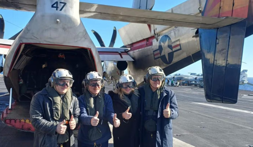 La visita se produjo tras una invitación del embajador estadounidense en la Argentina, Peter Lamelas, en el contexto de la llegada al país del USS “Nimitz”, uno de los portaaviones de propulsión nuclear más grandes del mundo. La nave arribó esta semana y tiene como destino el sur de Mar del Plata, donde se desarrolla uno de los tramos del ejercicio naval Southern Seas 2026.