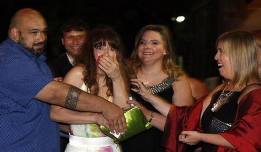 Una vez que se abrieron las puertas, la mujer se enteró que en realidad era ella quien se casaba y que Ortiz, su novio desde hace 30 años, la esperaba en el altar.