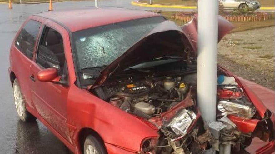 A las 6:42 de hoy, la policía tomó conocimiento de un choque en la rotonda del CADIC, donde un rodado impactó contra un poste de alumbrado. Se comisiona personal policial quienes una vez en el lugar constatan la veracidad del hecho, tratándose de un rodado Volkswagen, modelo Gol, dominio BXV-697, color rojo conducido por Gonzalo Miño (24) el cual colisionó de frente a un poste dispuesto sobre la margen izquierda de Prefectura Naval.
