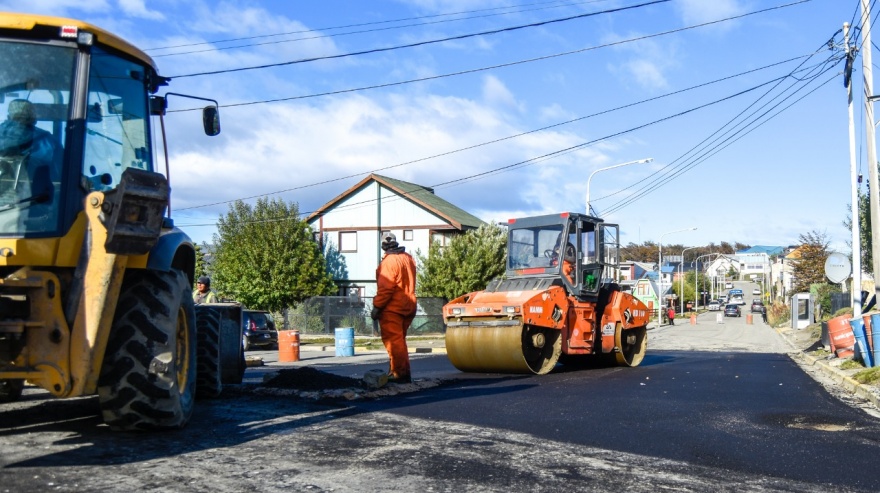 La Municipalidad de Ushuaia continúa los trabajos de repavimentación en la calle Hipólito Yrigoyen, en la rotonda de la calle Formosa y en el tramo que va desde Del Tolkeyen hasta Los Ñires, para buscar su pronta habilitación.